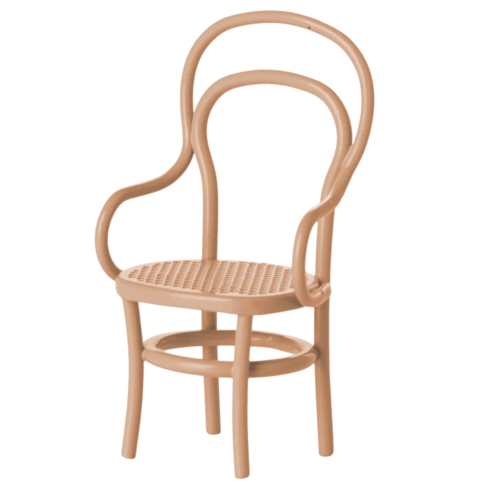 Den här charmiga lilla stolen är designad för att passa både Lillasyster/Lillebror och Storasyster/Storebror-mössen. Den passar perfekt i de små rummen där mössen bor och blir en fin detalj i mössens hem.