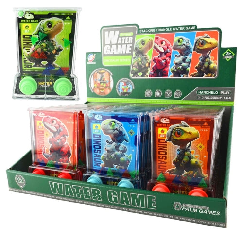 Upptäck det roliga och nostalgiska vattenspelet med dinosauriemotiv! Ett klassiskt och underhållande spel som fungerar helt utan batterier – perfekt för resor, väntetid eller som en skärmfri aktivitet.