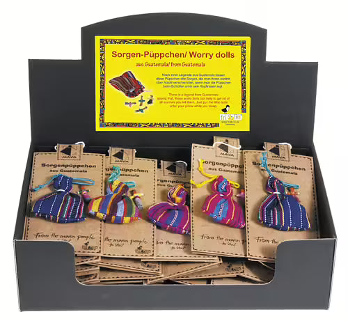 "Orosdockorna" är tillverkade av maya-indianer i Guatemala. Enligt legenden berättar barnen om vad som oroar dem för dockorna. Dockorna läggs under huvudkudden och påföljande morgon har de tagit bort bekymren.
